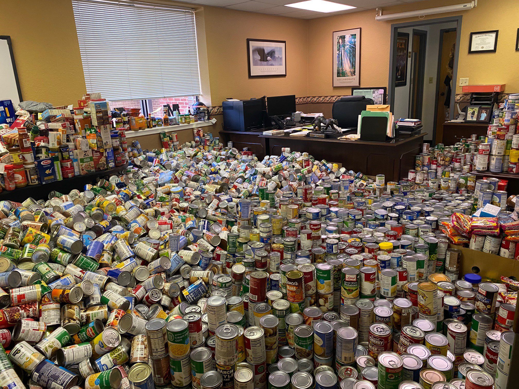 Milton High School was the winner in this year’s canned food drive, with students collecting 43,840 pounds of food. Pace High School students collected 20,980 pounds.