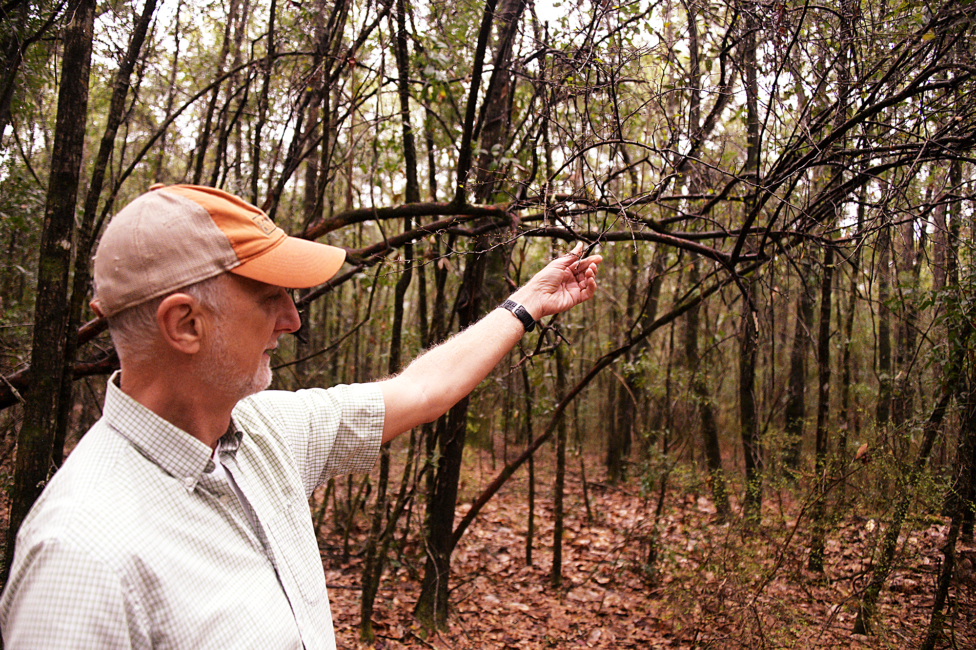 Vernon Compton stands on the edge of Clear Creek Nature Preserve, where Longleaf Alliance, a conservation organization he belongs to, is currently working to create trails for public recreation.