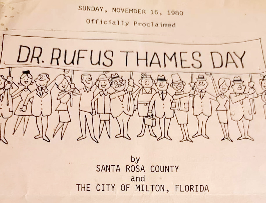 These were the words of long-time Milton resident Dr. Rufus Thames at the conclusion of every appointment or house call he had. According to his wife, Gale, these words were his favorite expression. Thames, who sadly passed away in 1990, was a well-loved doctor in the community for several decades. His work spanned generations of residents in Milton with impacts still felt by people today.