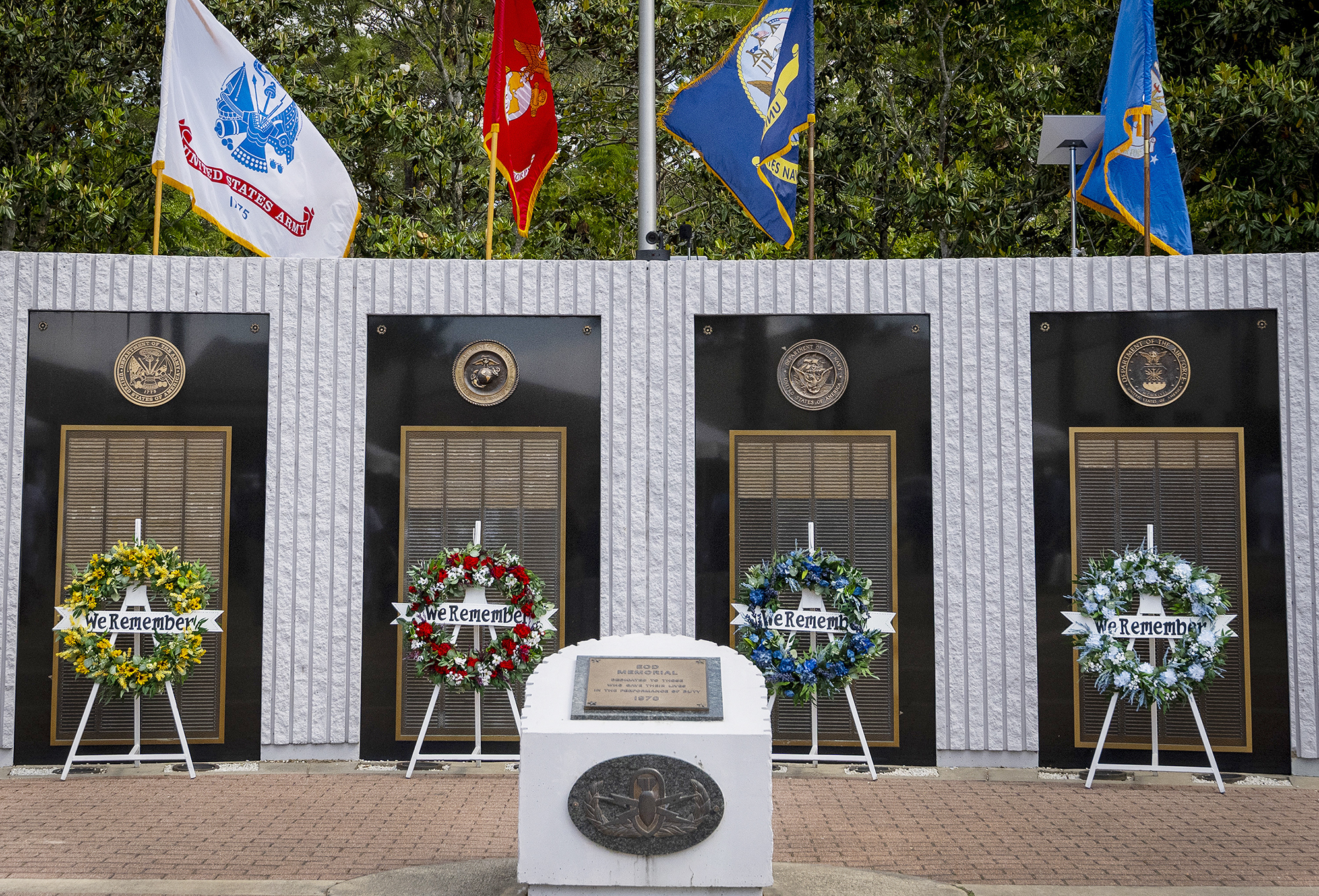 Eglin Air Force Base — Dressed in the bright whites, deep blues and dense blacks of their service uniforms, Airmen, Marines, Sailors and Soldiers returned this year to honor and remember their fallen explosive ordnance disposal brethren May 4.