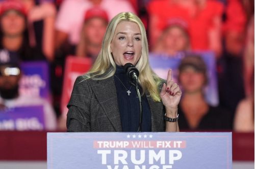 Former Florida Attorney General Pam Bondi, speaks before Republican presidential nominee former President Donald Trump at a campaign rally at First Horizon Coliseum, Nov. 2, 2024, in Greensboro, NC. (AP Photo/Alex Brandon, File)
