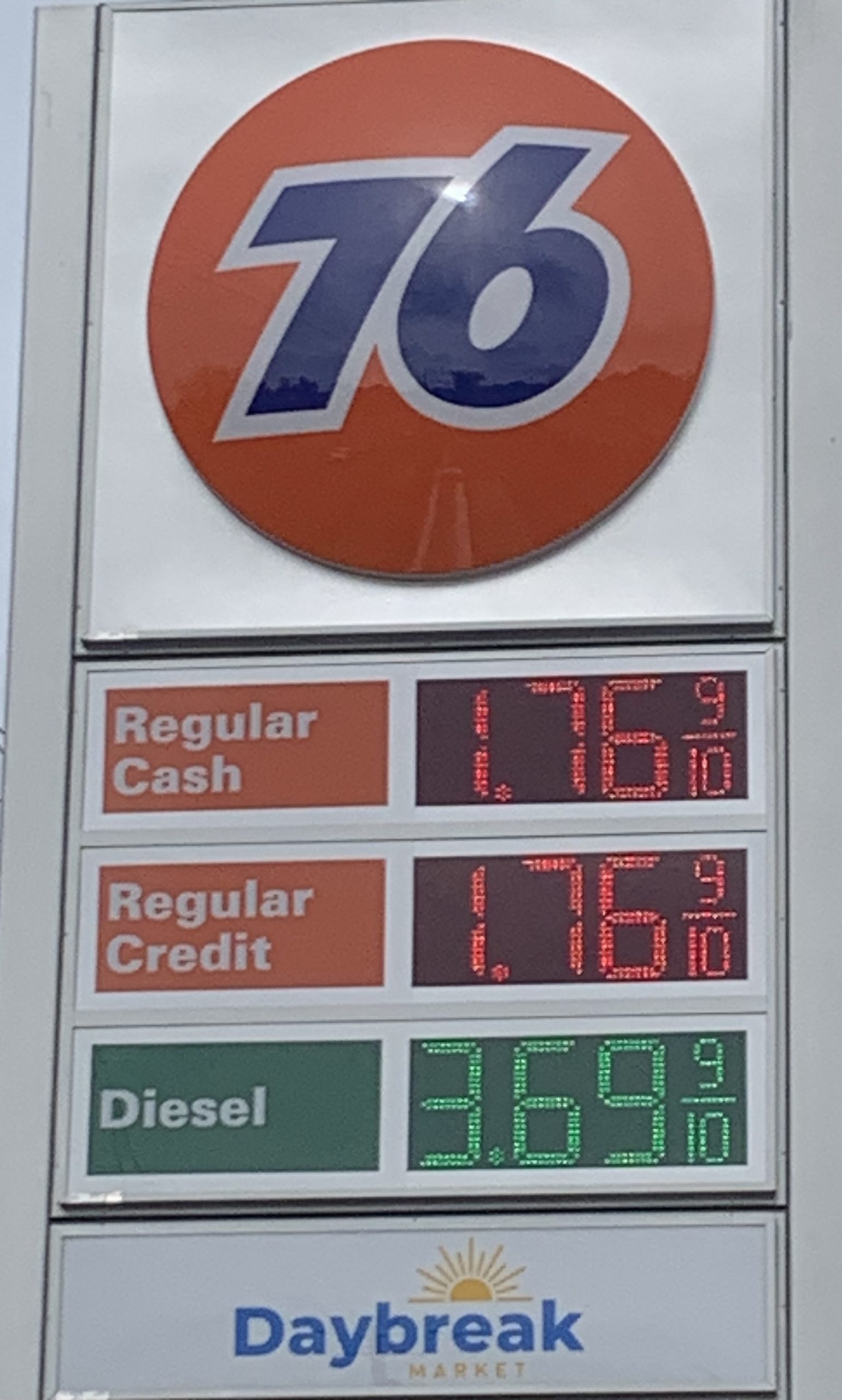 The Daybreak Market/76 gas station at the intersection of Santa Rosa Drive and U.S. Highway 90, just west of East Spencer Field Road, is selling regular gas for $1.76 per gallon until 5 p.m. today. Mark Contos, vice president of the Daybreak Market company, said the store has 31,000 gallons available for the grand-opening special.